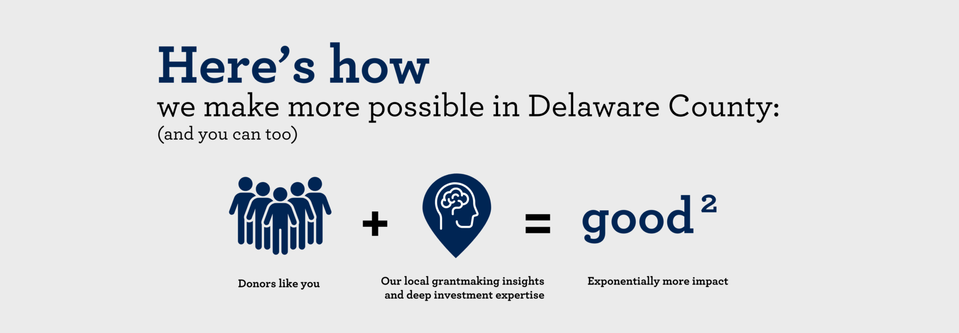 Que vous vous intéressiez à la santé, au logement, à la sécurité alimentaire, aux arts, à l’environnement ou à une autre cause, nous sommes votre partenaire de confiance pour rendre plus possible le comté de Delaware.